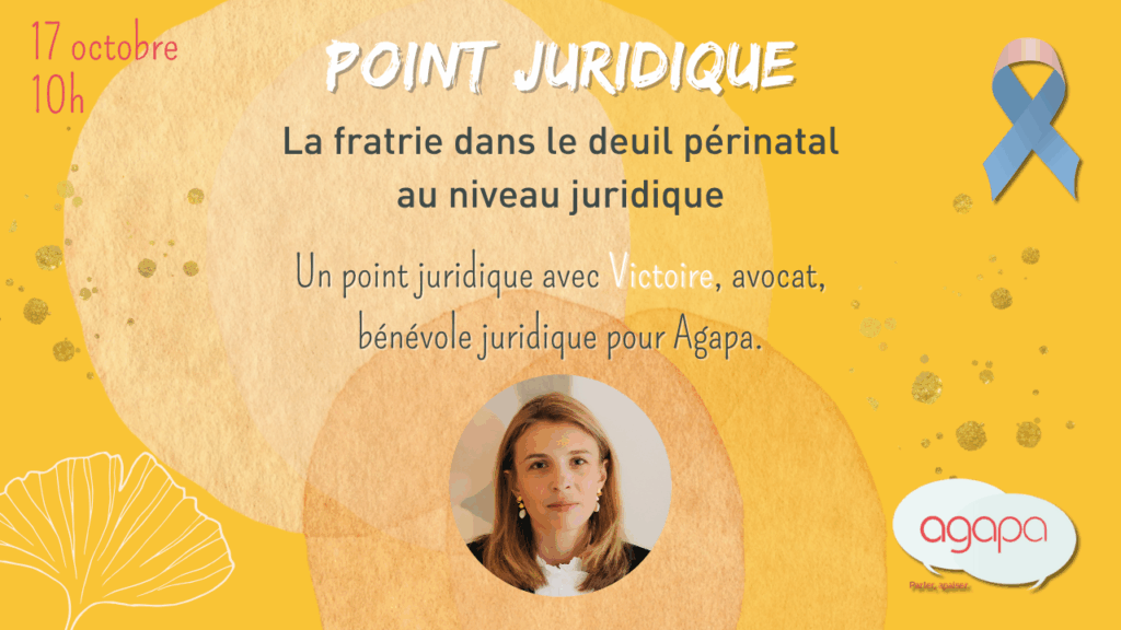 Victoire, avocat et bénévole juridique pour Agapa, fera le point sur tout ce qui concerne la fratrie au niveau juridique : congés maternité et paternité, allocations, congés deuil…