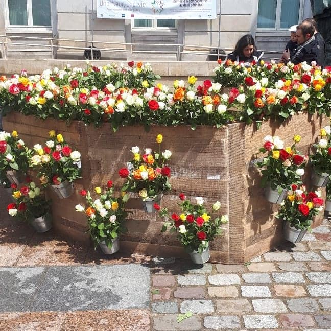 Vers 18h, à la clôture de la journée, ce sont plus de 1000 fleurs qui éclataient de couleurs sur la structure du bouquet, qui embellissaient le deuil de leur présence. Elles ont continué leur mission de réconfort à Claire Demeure, centre de soins palliatifs à Versailles, pour égayer les chambres des personnes en fin de vie.